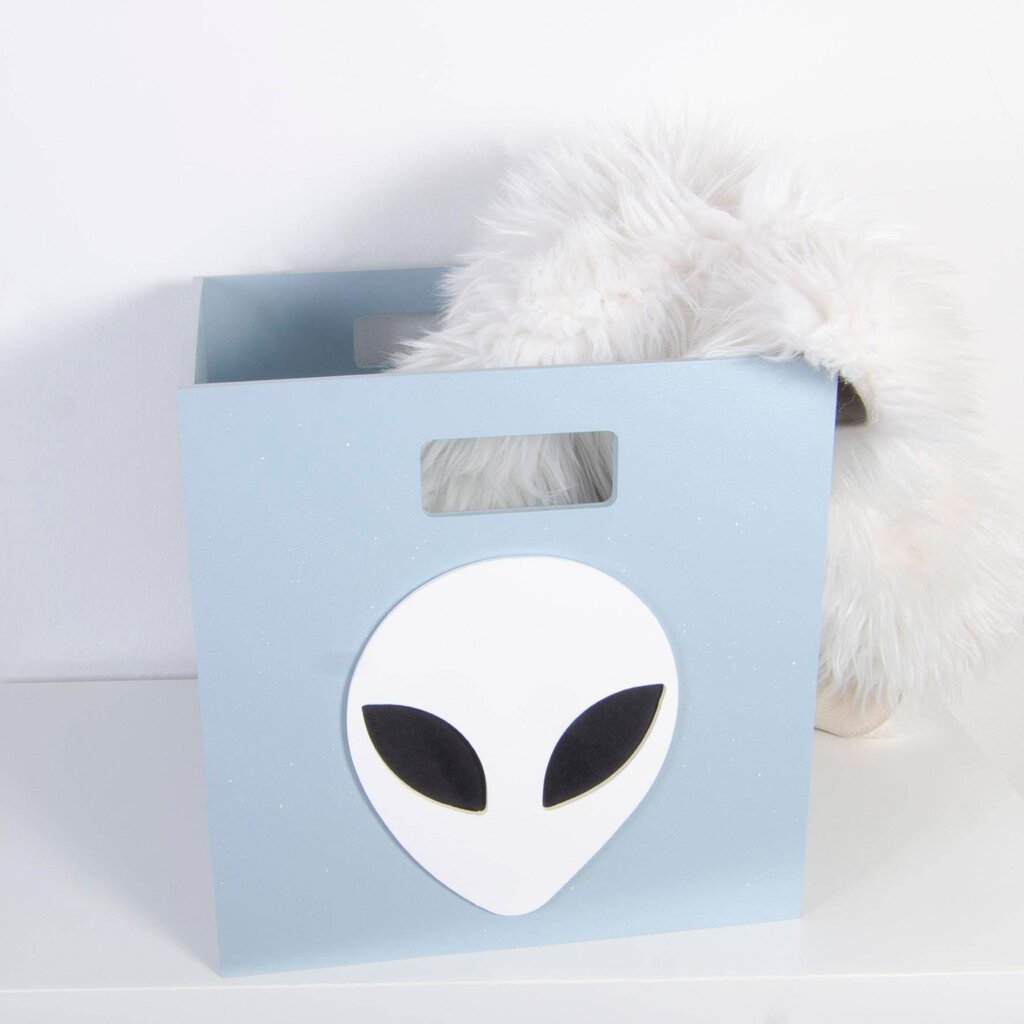 Dřevěný box s mimozemšťanem - UFO, do Kallax regálu, sv.modrý